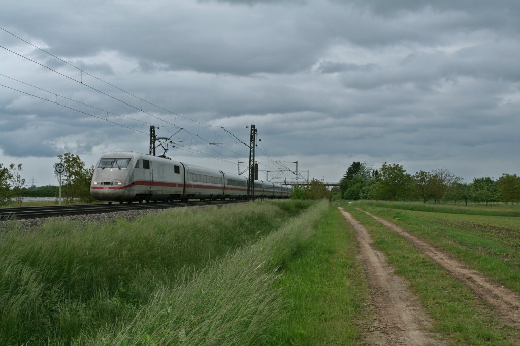 ein unbekannt gebliebener 401 als ICE 271 nach Basel SBB am 23.05.13 bei Hügelheim.