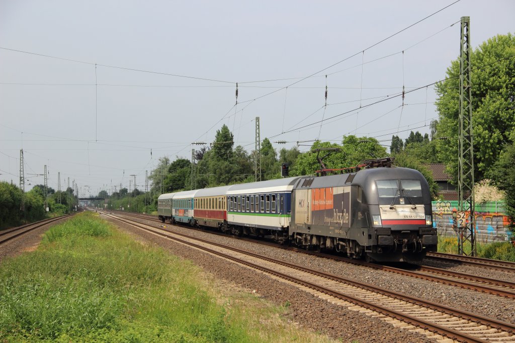 ES 64 U2-034 mit dem HKX 1802 (Hamburg-Altona - Köln Hbf) be ider Durchfahrt duch Angermund am 20.06.13