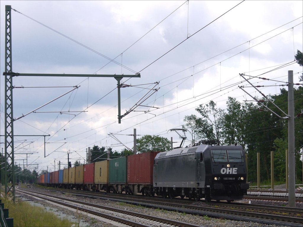OHE 185 546 mit einem Containerzug (46180) von Bratislava über Österreich kommend in Richtung Hamburg; Winsen (Luhe), 22.06.2013