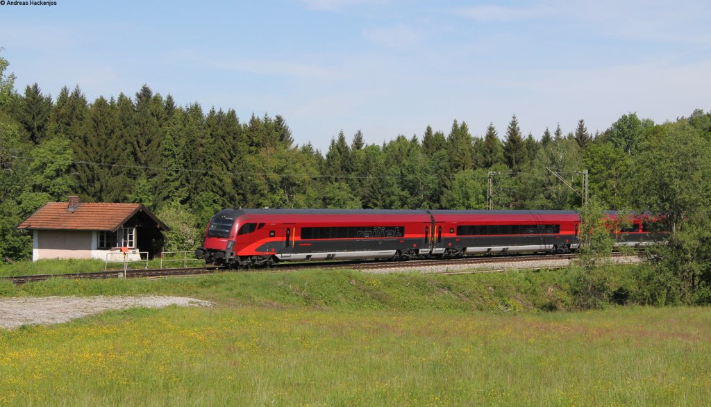 RJ 63 (München Hbf-Budapest-Keleti) mit Schublok 1116 229-4 an der ex Bk Ametsbichl 28.5.13