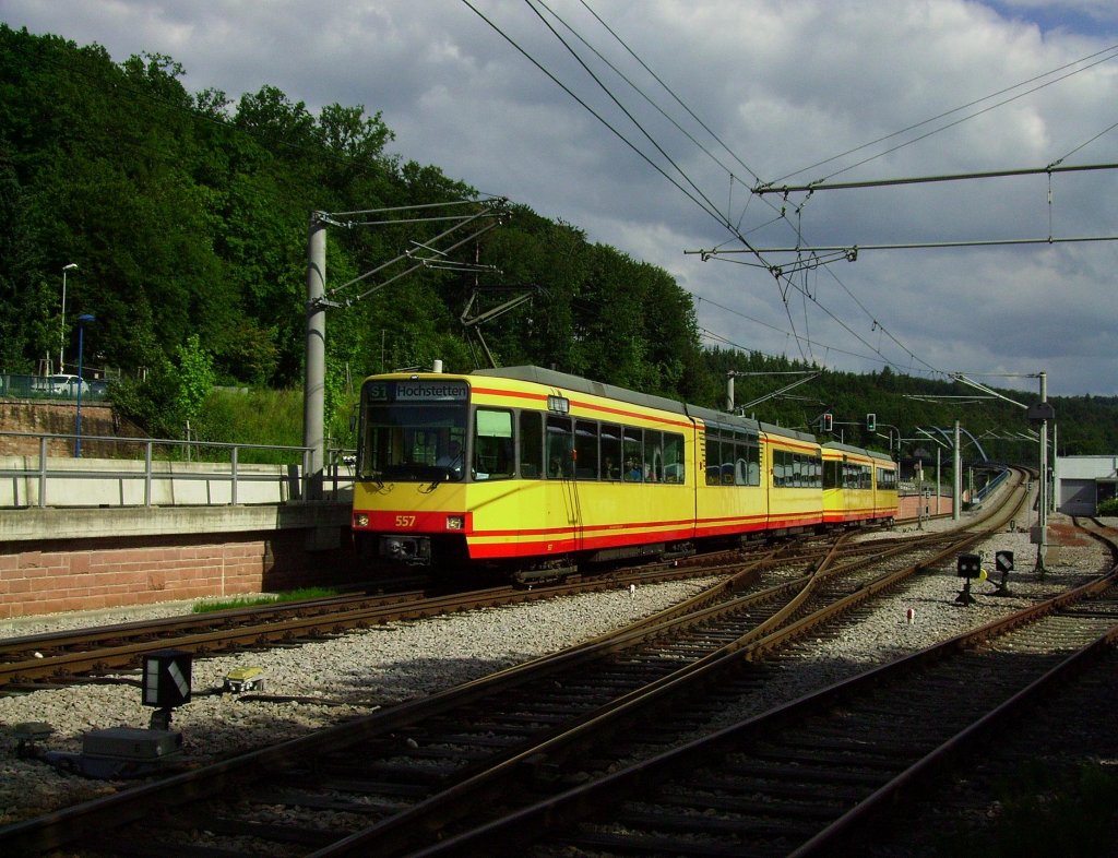 Tw 557 und sein Kollege 515 waren am 22.06.2013 für S 30156 nach Hochstetten eingeteilt, als das Wolkenlotto sich für mich entschied. So passiert am 22.06.2013 bei der Einfahrt in den Bahnhof Busenbach (RBUS).