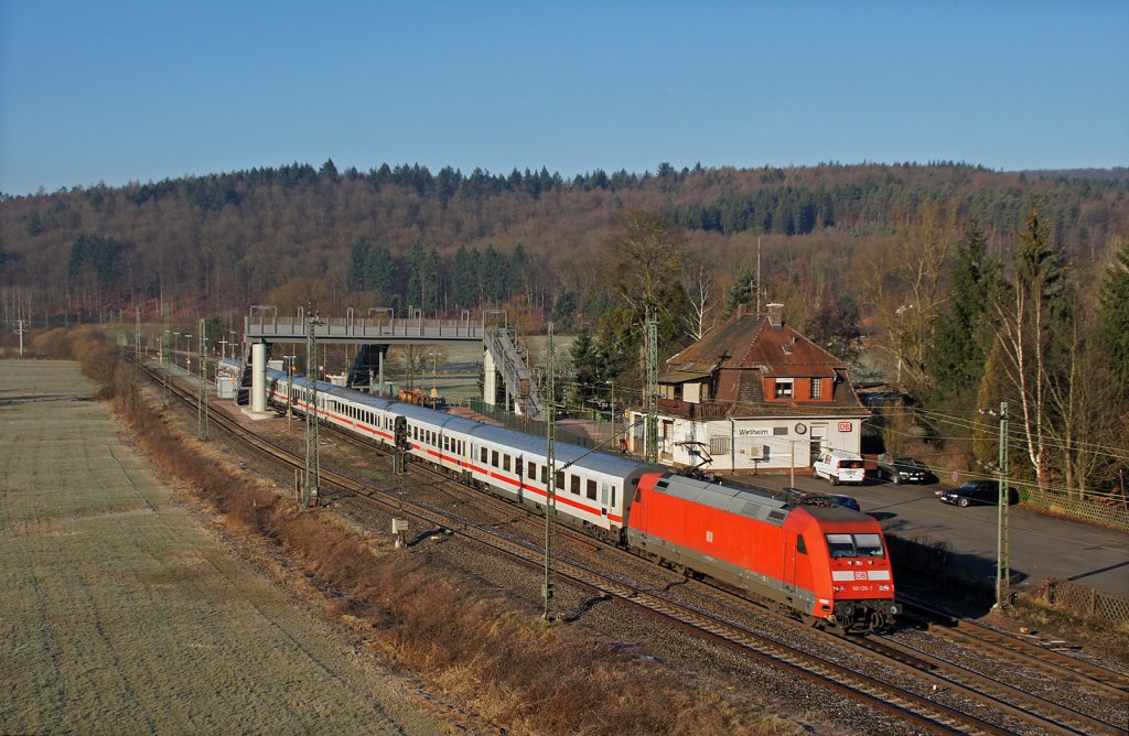 DB 101 051 mit IC 2013 nach Oberstdorf passiert die Fotograf bei Oberwinter.