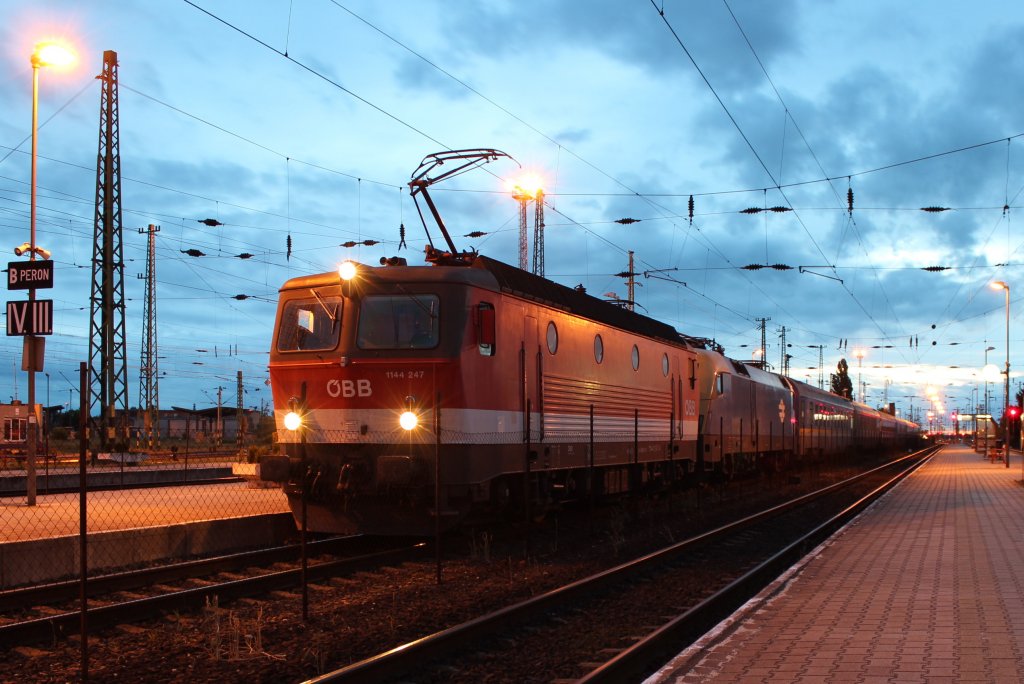 1144 247 schleppte die untaugliche 470 008 mit den EN 347 "Dacia" von Wien Westbahnhof (Ws) nach Bucuresti nach Hegyeshalom (He), 1144 247 fuhr ab Wien Matzleinsdorferplatz (Mat) den Zug, ab Hegyeshalom gings wieder mit der 470 008 weiter; am 25.06.2013