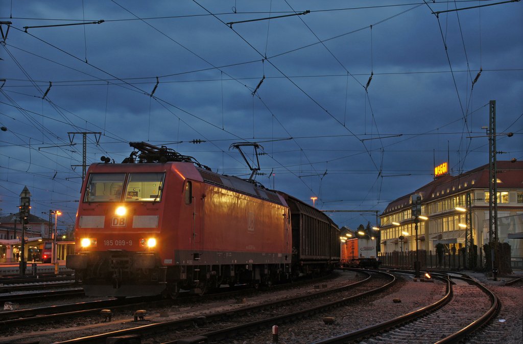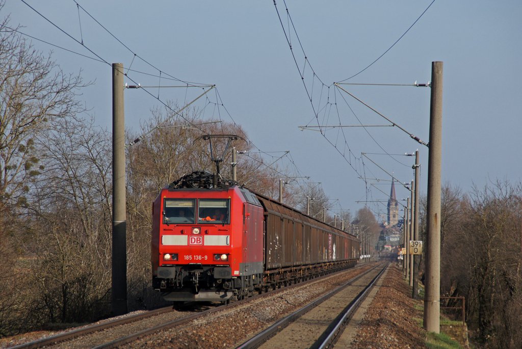 185 401 zog am 1.2.13 einen gemischten Güterzug durch Ratingen-Lintorf.