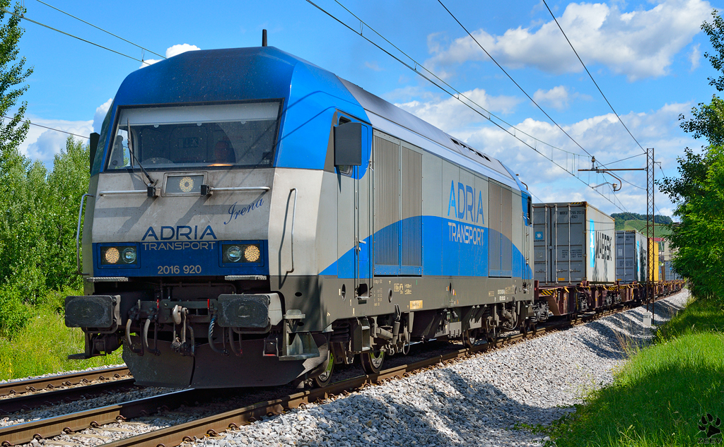 ADRIA Transport 2016 920 'Irena' zieht Containerzug durch Maribor-Tabor Richtung Koper Hafen. /26.6.2013