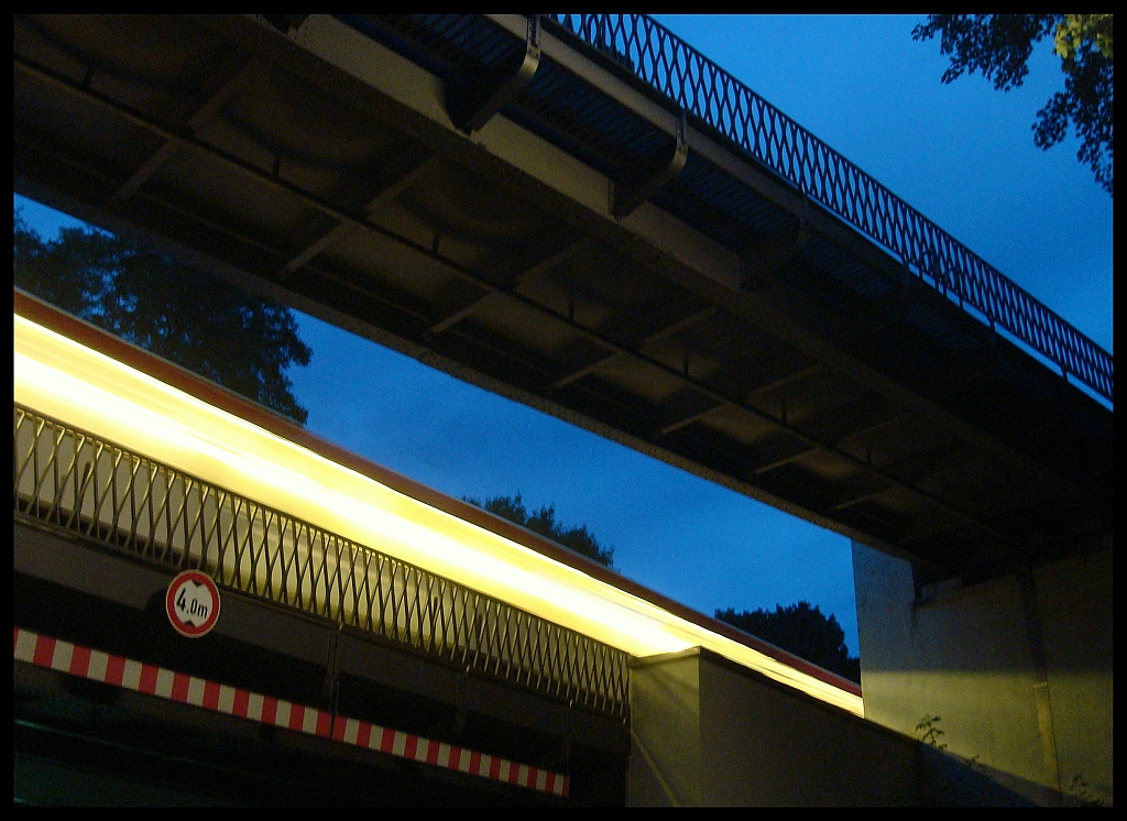 Archiv: nächtliche Fahrt eines Zuges der Linie U1 kurz vor dem Hamburger U-Bahnhof "Kellinghusenstraße". 10.8.2009