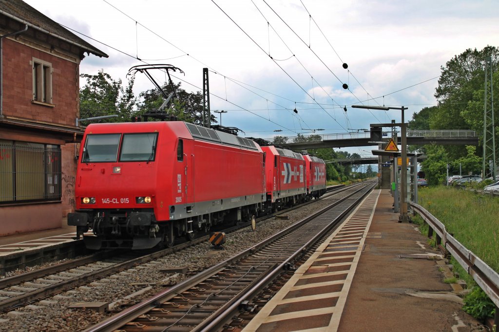 145 023 zieht am 1.2.13 eine 155er und einen Güterzug durch Ratingen-Lintorf.