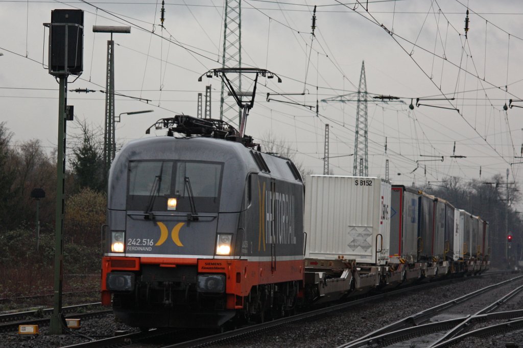 Hectorrail 242.5016 "Ferdinad" am 1.2.13 mit dem DGS 42710 von Ehrang nach Helsingborgs Central in Ratingen-Lintorf.