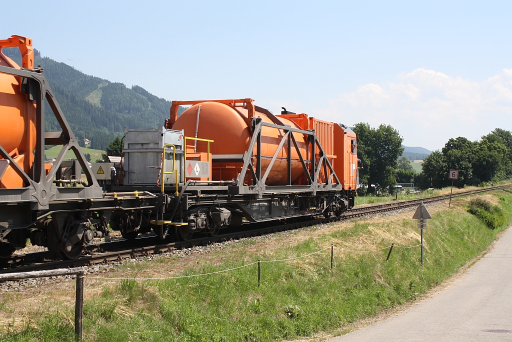 Tersus X691.503-7 (UIC-Nr. 99 81 9195 504-1), ein Umbau aus DB-Cargo Sprinter und Bestandteil des MMT (Multi Modul Train), am 21.Juni 2013 im ehemaligem Bf. Fohnsdorf.