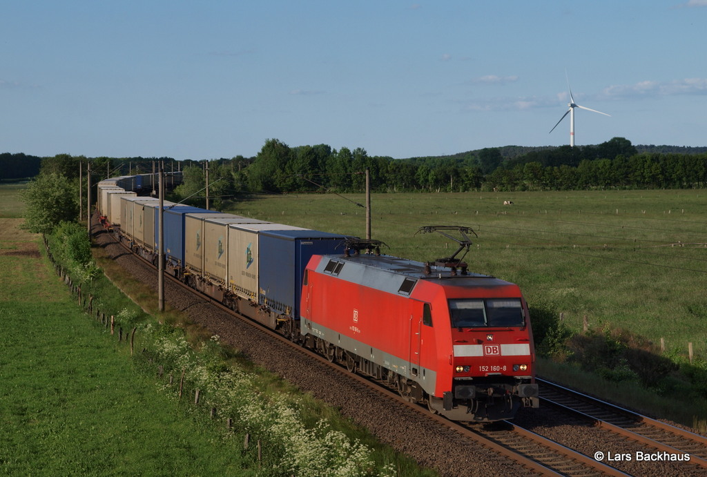 152 160-8 rollt am 05.06.13 mit dem "lit" KLV durch Ramelsloh Richtung Bremen.