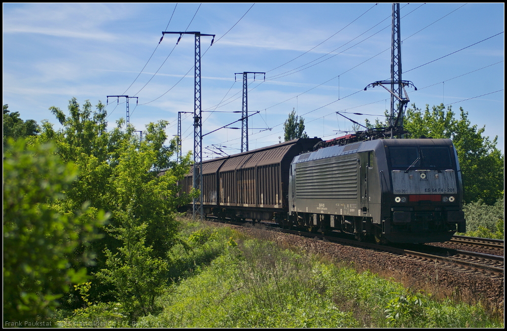 140 038-0 PRESS (140 851-7) mit einem Holzzug bei Rathenow und fuhr nach Stendal weiter. 05.06.2013