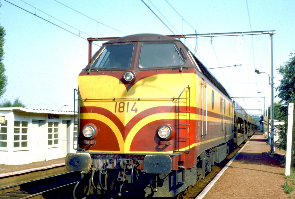 Luxemburg, CFL Diesellok 1814 auf der Strecke Luxemburg - Arlon (B) - Namur. Scan eines Dias aus dem Jahr 1975.