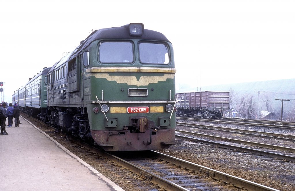 628 005-1 verläßt im April 1976 den Bahnhof Peine