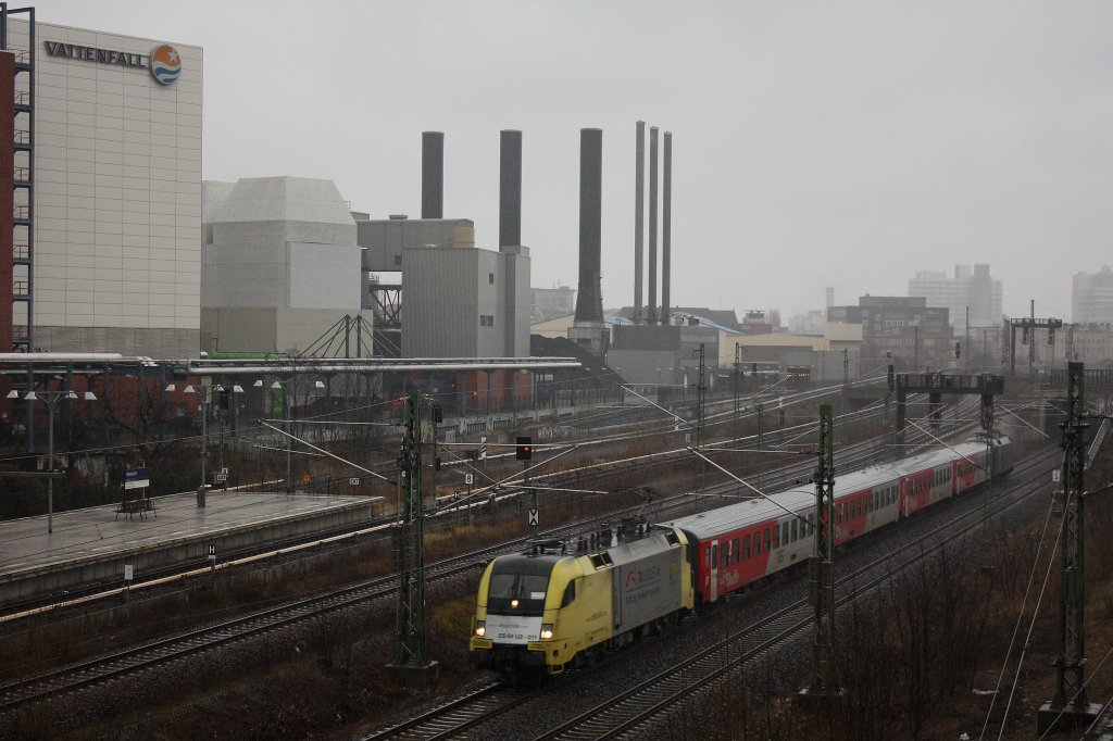 MRCE Dispolok/TXL ES 64 U2-011 zieht am 4.1.13 einen ODEG Ersatzzug durch Berlin-Westhafen.