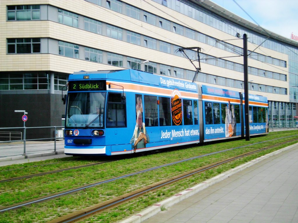 Rostock: Straßenbahnlinie 2 nach Rostock-Südstadt Südblick an der Haltestelle Rostock-Stadtmitte Schröderplatz.(3.6.2013)