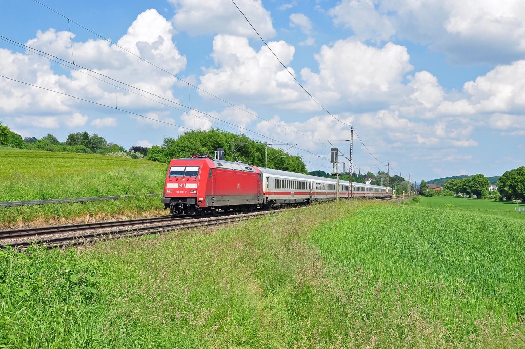 101 003 kommt mit dem EC 114 aus Klagenfurt und fährt nach Dortmund.Ich konnte diesen Zug in Szene setzen bei Ebersbach an der Fils am 8.6.2013.