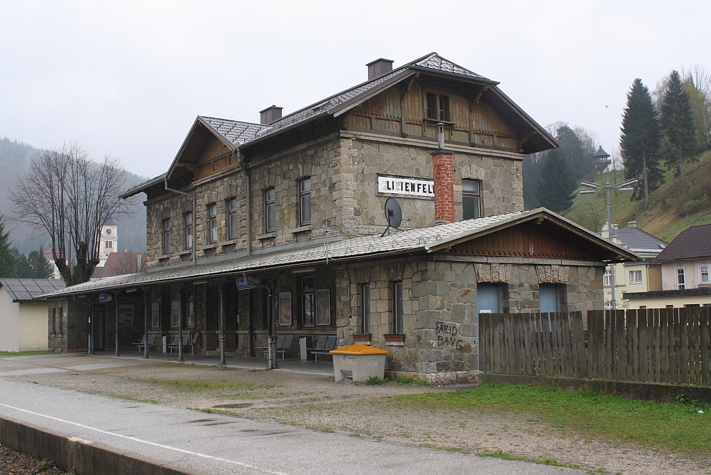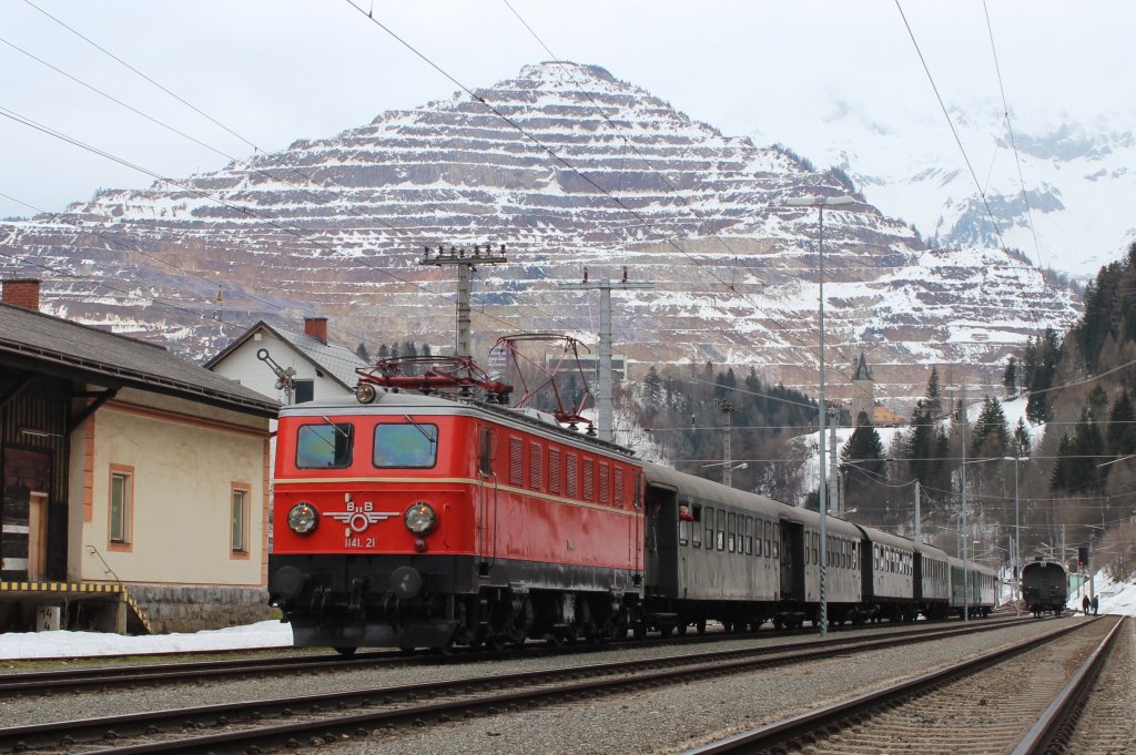 Schmalspur E-Lok E3 fährt auf der Breitenauerbahn vom Magnesitwerk in St.Erhard nach Mixnitz. Diese schmalspurige Nebenbahn steht im Eigentum der Lokalbahn Mixnitz-St.Erhard AG (100%ige Tochtergesellschaft der Veitsch-Radex GmbH & Co). Aufgrund eines Betriebsführungsvertrages wird sie von den Steiermärkischen Landesbahnen geführt.
