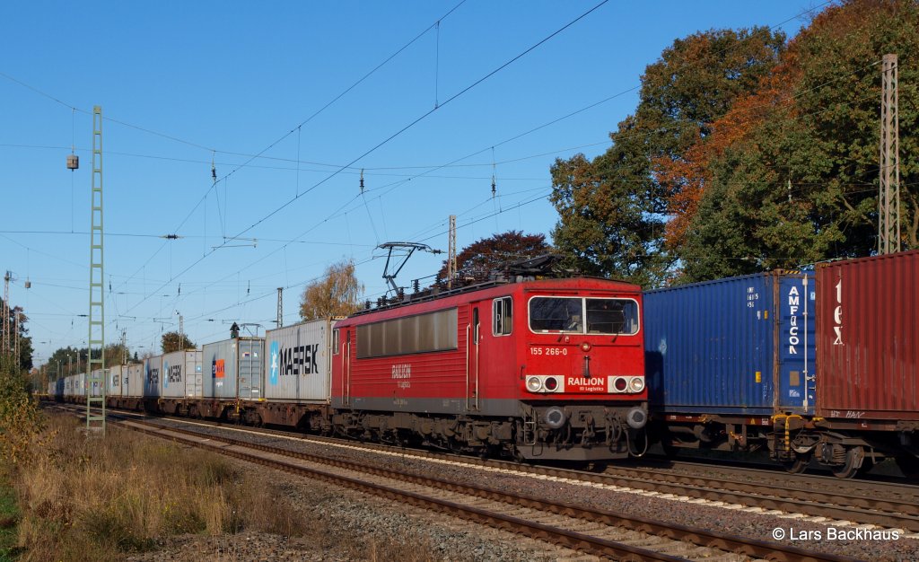 Ascendos/EGP 266 005 am 10.10.12 mit zwei Wagen bei der Durchfahrt durch Duisburg-Bissingheim.Der Zug hat sein Ziel Duisburg-Entenfang somit fast erreicht.