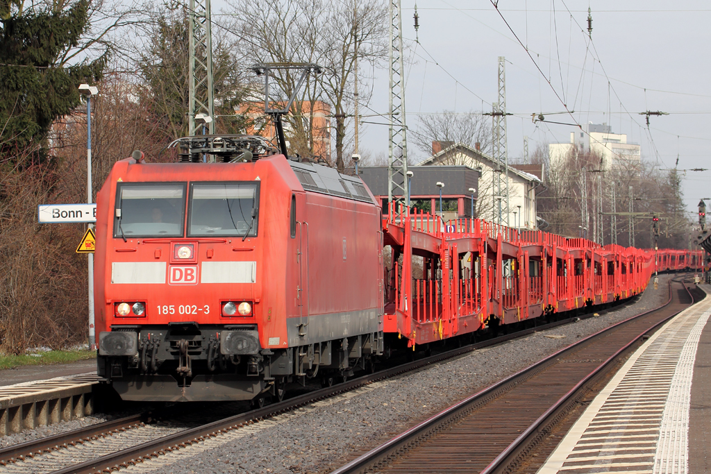 185 224-3 erreicht von Österreich kommend mit einem Containerzug Passau-Hbf; 130316