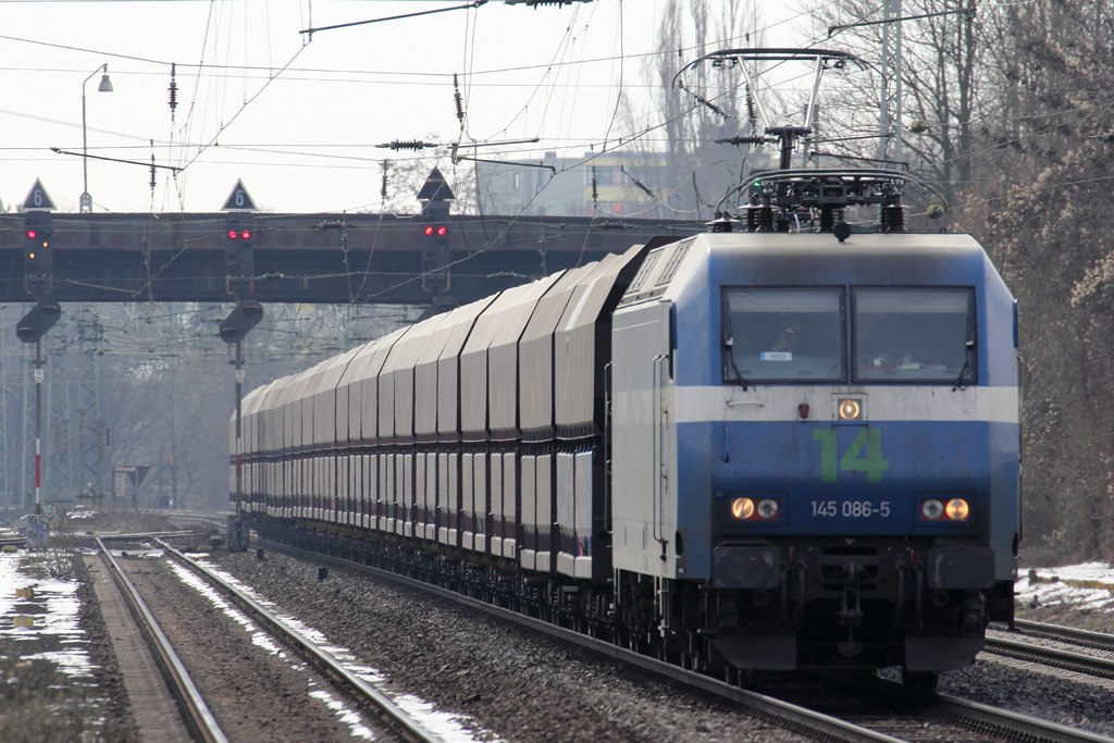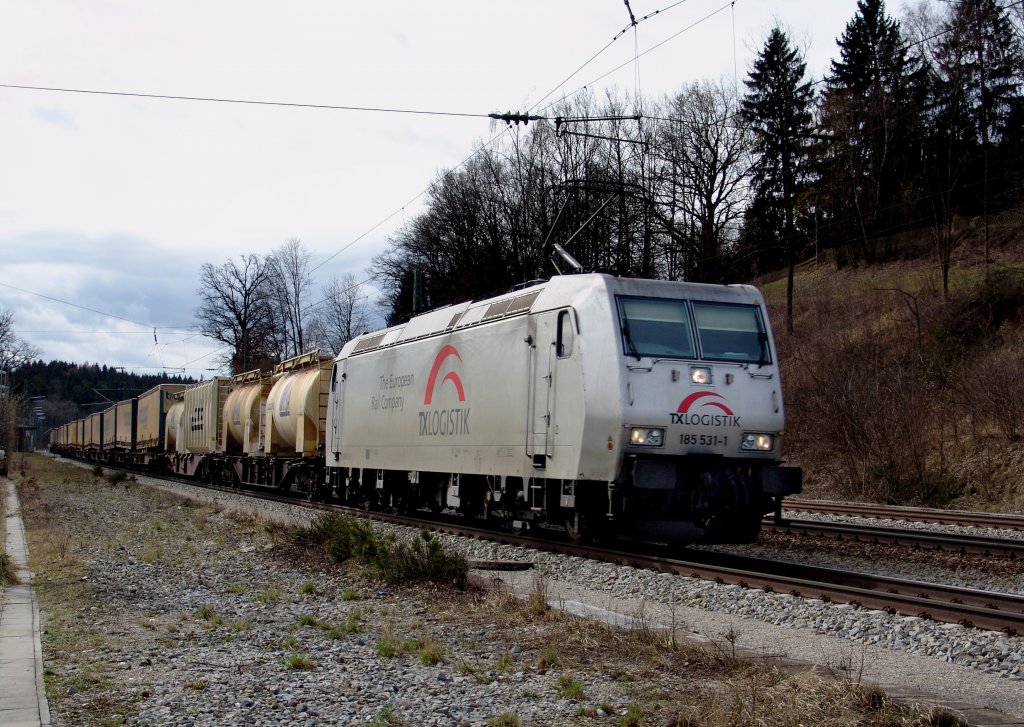 122 039-1 hat am 18. März 2013 mit einem Containerzug nach Deutschland den Deciner Güterbahnhof erreicht. Der Zug wurde anschließend auf DB 189 umgespannt.