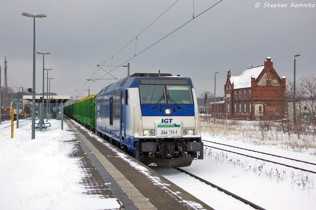 180 012-7 steht am 18. März 2013 mit einem Getreidezug in Decin abgestellt.
