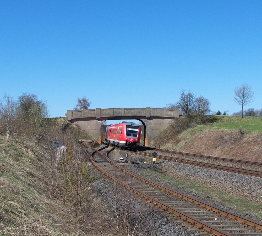 612 489 hat aus Zeulenroda kommend den Bahnhof Mehltheuer verlassen und fährt nun weiter auf der KBS 530 (545)in Richtung Hof dem Ziel Regensburg entgegen.