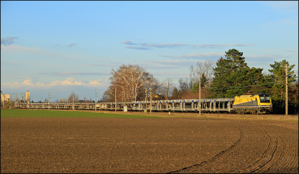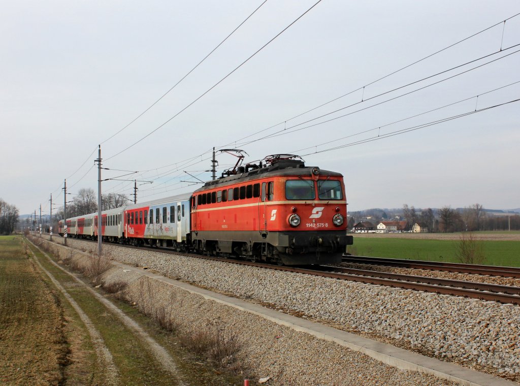 1116.178 bringt gemeinsam mit der 1116.272 und der 1116.088 am 19.03.13 einen Güterzug von Wampersdorf kommend nach Ebenfurth.