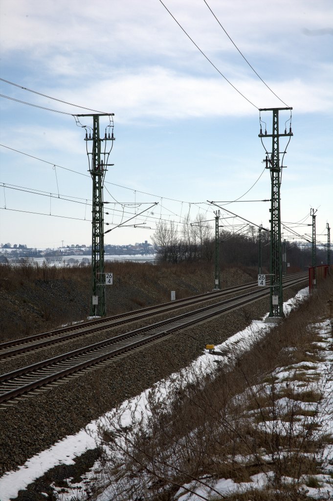 Wegen Bauarbeiten in Großenhain Cottbuser Bahnhof wurde der RE 18 Cottbus - Dresden am 16.3.2013 über Elsterwerda umgeleitet und bot so die seltene Gelegenheit den Zug mit dem Einfahrvorsignal des Bahnhofs Elsterwerda-Biehla zu fotografieren. Hier passiert 143 306-9 mit RE 18407 das vermutlich letzte noch in Betrieb befindliche alte Hl-Vorsignal mit schrägen Signalschirm.