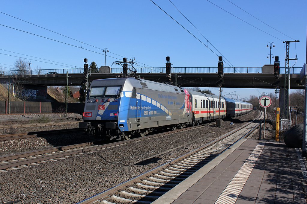 101 013-1 fuhr am 18.03.2013 mit dem IC 133 von Luxemburg nach Norddeich, hier bei Veenhusen.