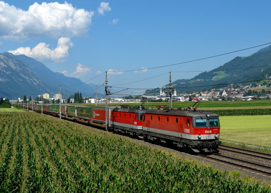 HZ Elektrolok 1141029 wartet vor einem Güterzug abfahrbereit im