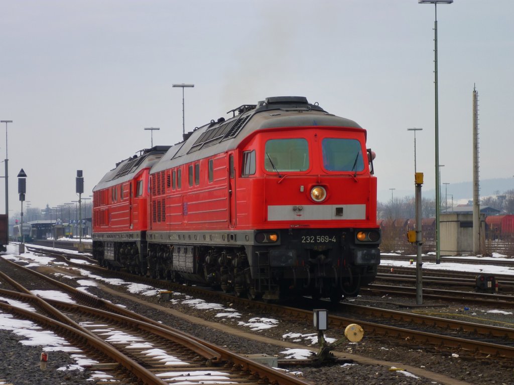 Mehrere Maschinen standen an der Rückseite der  Railion Deutschland AG Servicestelle Saalfeld, darunter eine Lok BR 290 und mehrere 232.  26.2.2012