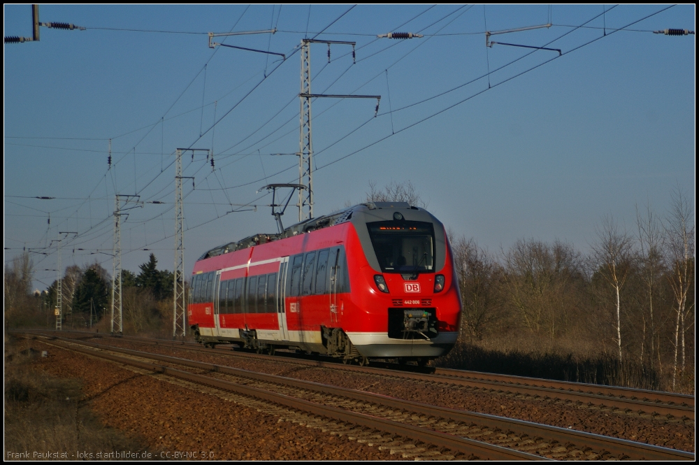 DB 442 006 am 05.03.2013 auf dem Weg nach Berlin-Lichtenberg in der Berliner Wuhlheide