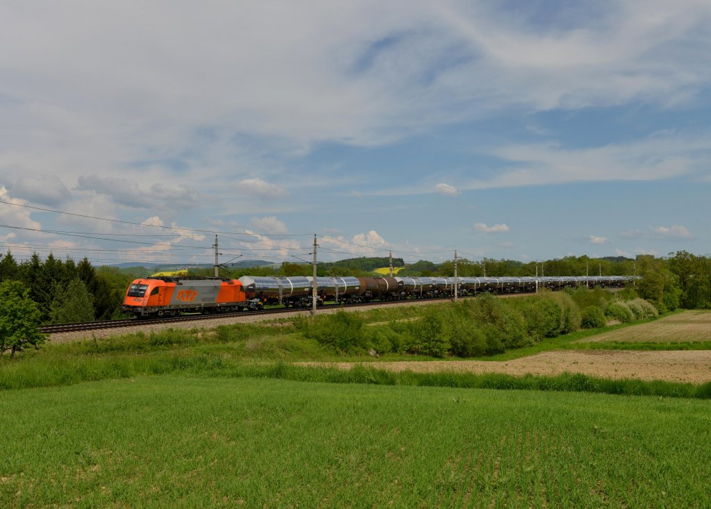 2016 051 zieht den Holzzug 63510 von Knittelfeld nach Pöls, zur dort ansässigen Zellstofffabrik. Fohnsdorf 10.5.2013
