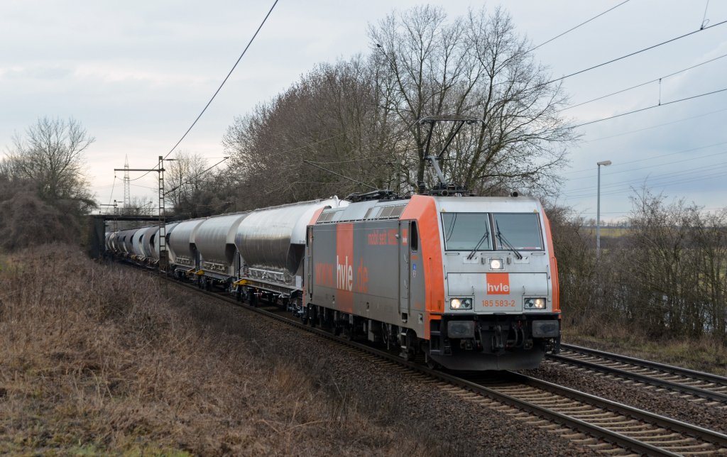 185 583 der hvle beförderte am 11.04.13 einen Silozug durch Ahlten Richtung Lehrte.