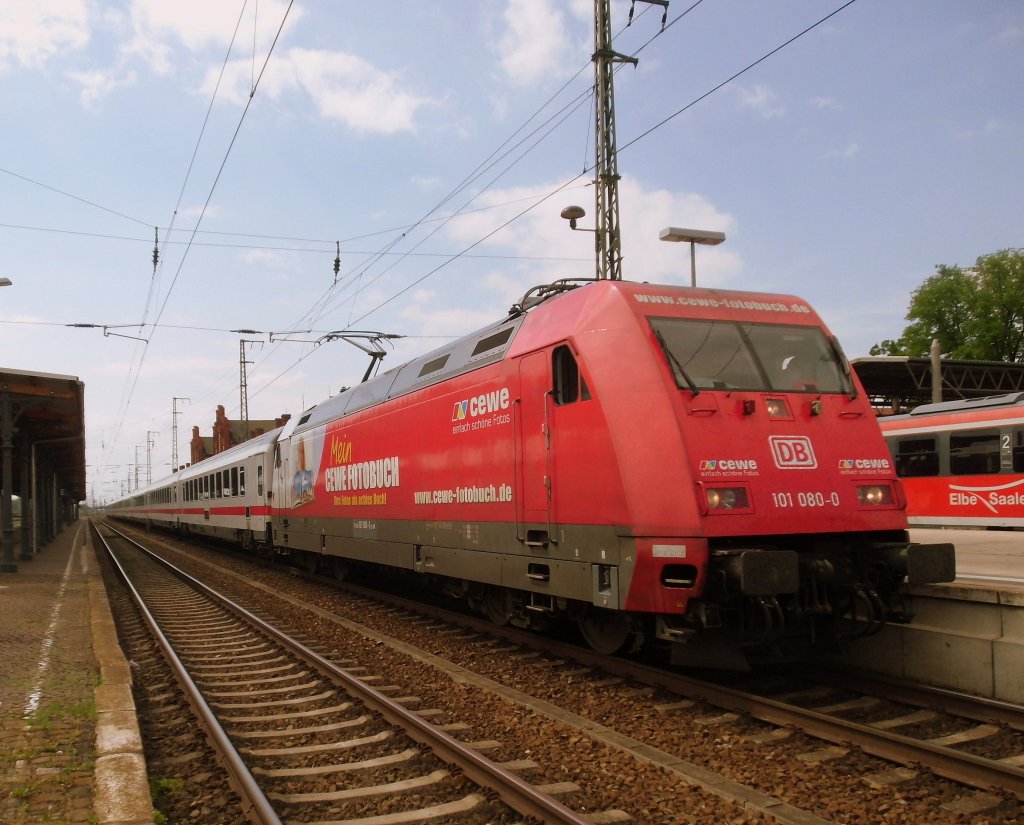 101 101 frisch aus der HU (ua. Beklebung entfernt) durchfährt mit ihrem EC Dresden Stetzsch. 8.5.13