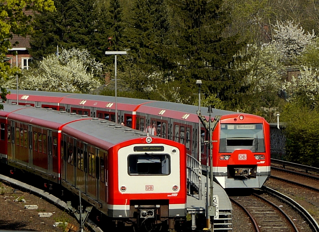 Zugbegegnung am Hamburger S-Bahnhof "Hasselbrook". 19.4.2011
