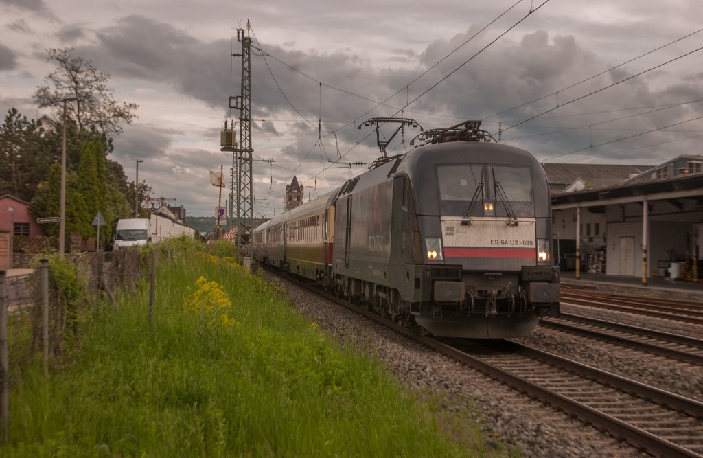 Rebenexpress - Zwar nicht ganz so idyllisch wie das Moselbähnchen zwischen Trier und Bullay (da habe ich noch Kindheitserinnerungen) aber zwischen Taben und Konz führt die Saarstrecke (KBS 685 - Bahnstrecke 3230 Saarbrücken-Karthaus) meist an Weinbergen vorbei. Links liegen die Weinberge von Kanzem, geradeaus die von Wiltingen und rechts nebem den Gleisen liegt das Weingut von Günther Jauch.
