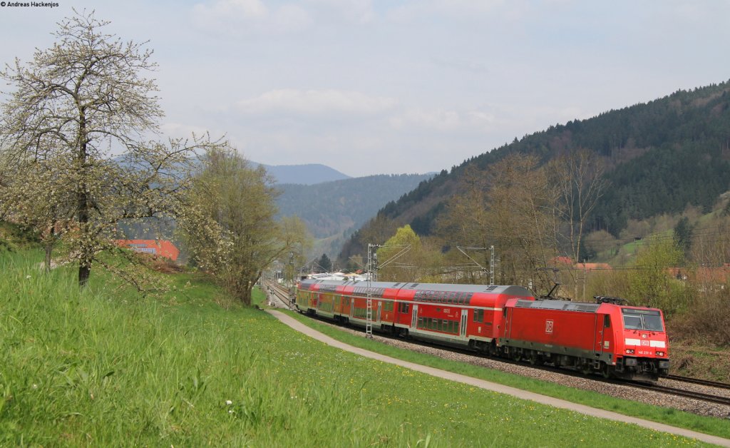 Die württembergische Schwarzwaldbahn am 11. Mai 2013 in der Nähe von Ostelsheim.