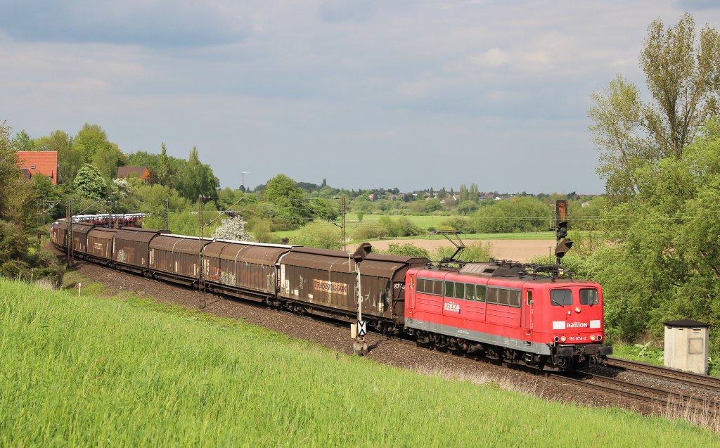 155 013-6 mit einem gemischten Güterzug am Haken, fuhr am 12.05.2013 durch Hannover Linden/Fischerhof.