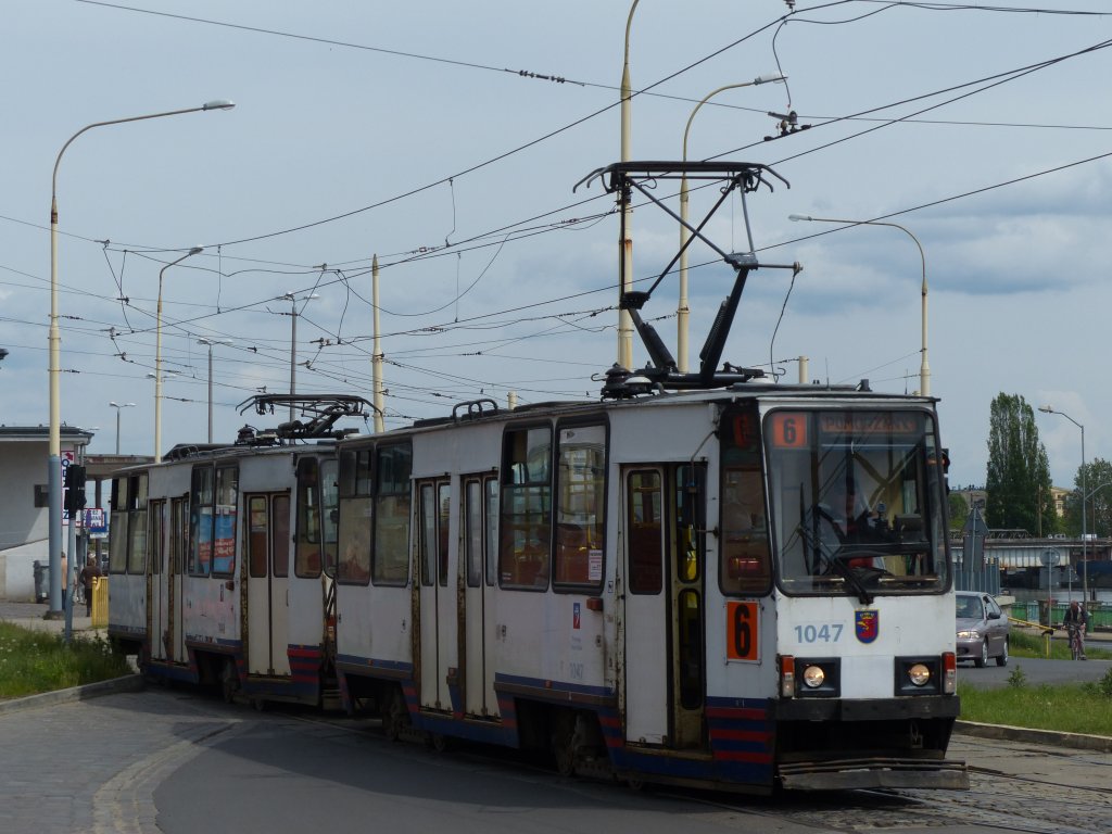 Wagen 757, der mir am nächsten Tag nochmals vor die Linse "springen" sollte, biegt hier gerade in die Dworcowa ein. 11.5.2013, Stettin