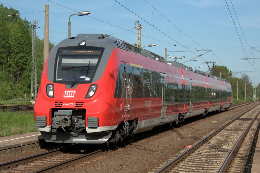 Hier 442 325-7 als RE7 (RE18716) von Bad Belzig nach Wünsdorf-Waldstadt, bei der Ausfahrt am 1.5.2013 aus Berlin Hbf.