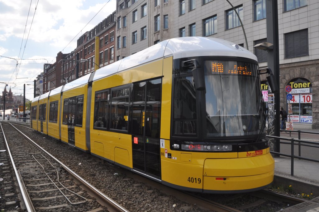 BERLIN, 28.04.2013, Wagen 4019 als MetromTramlinie M10 an der Endhaltestelle S+U-Bahnhof Warschauer Straße