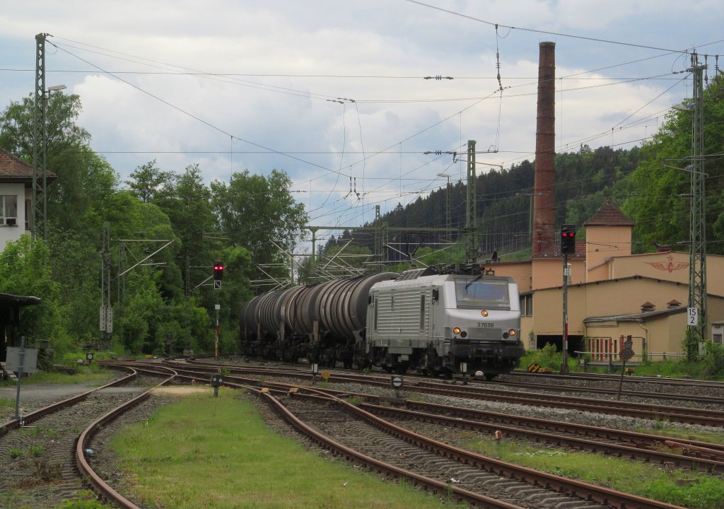 37030 von Akiem zieht am 21. Mai 2013 einen Kesselwagenzug durch Kronach.