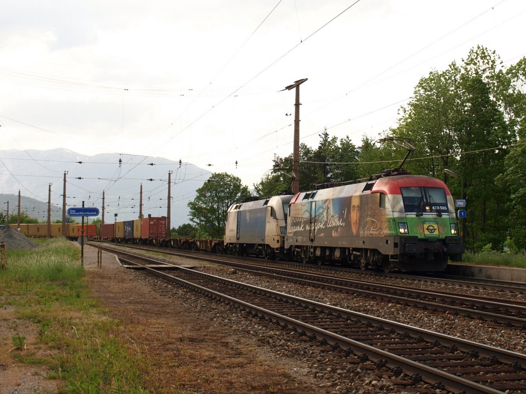 186 101 und 185 661 Lokomotion bringen am 04.05.13 einen Containerzug durch Aßling Richtung München.
