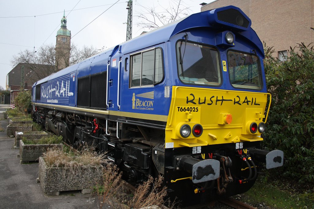 Beacon Rail/RushRail T664025 (266 025) am 1.12.12 abgestellt in Krefeld Hbf.