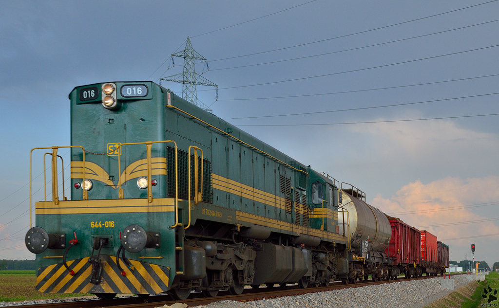S´ 644-016 zieht Güterzug durch Cirkovce Richtung Pragersko. /8.5.2013