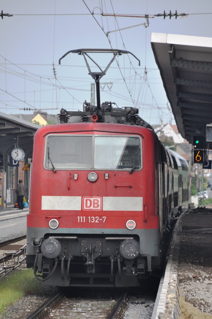 RHEINE (Kreis Steinfurt), 19.05.2013, 111 132-7 als Regionalexpress nach Emden Hbf bei der Ausfahrt