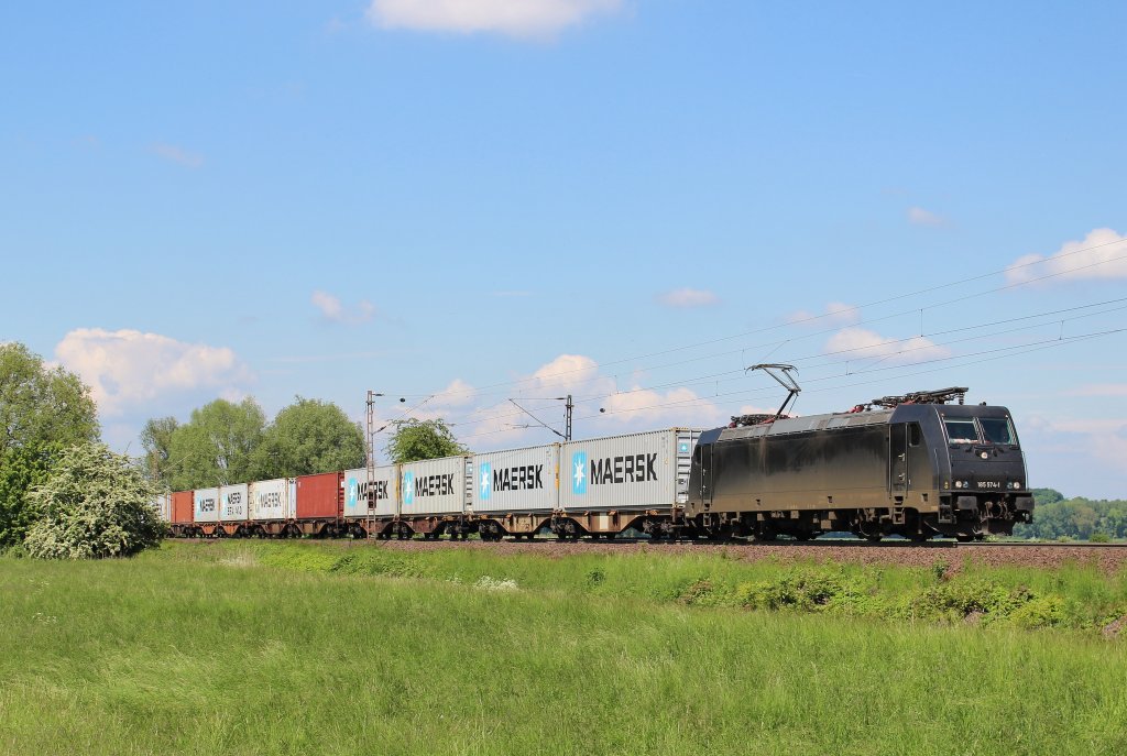 185 389 "CO2" mit Containerzug am 30.05.13 in Götzenhof