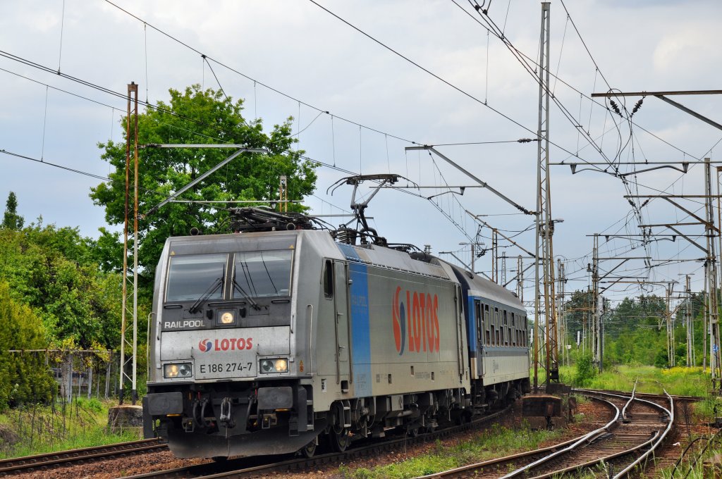 Der Himmel ist bedeckt und die Abendsonne versteckt sich hinter dem Wolkengrau, als die ex ÖBB Lok mit Werbung für das Lok Magazin, 1042.520, mit dem Classic Courier auf der Rollbahn unterwegs ist. Der Zug kommt von Königsberg und hat gerade in Osnabrück gestoppt. Hier rollt er am 30.05.2013 um 20.35 Uhr durch den Bahnhof Hasbergen und hält auf seiner Weiterfahrt nach Köln danach wieder in Münster.