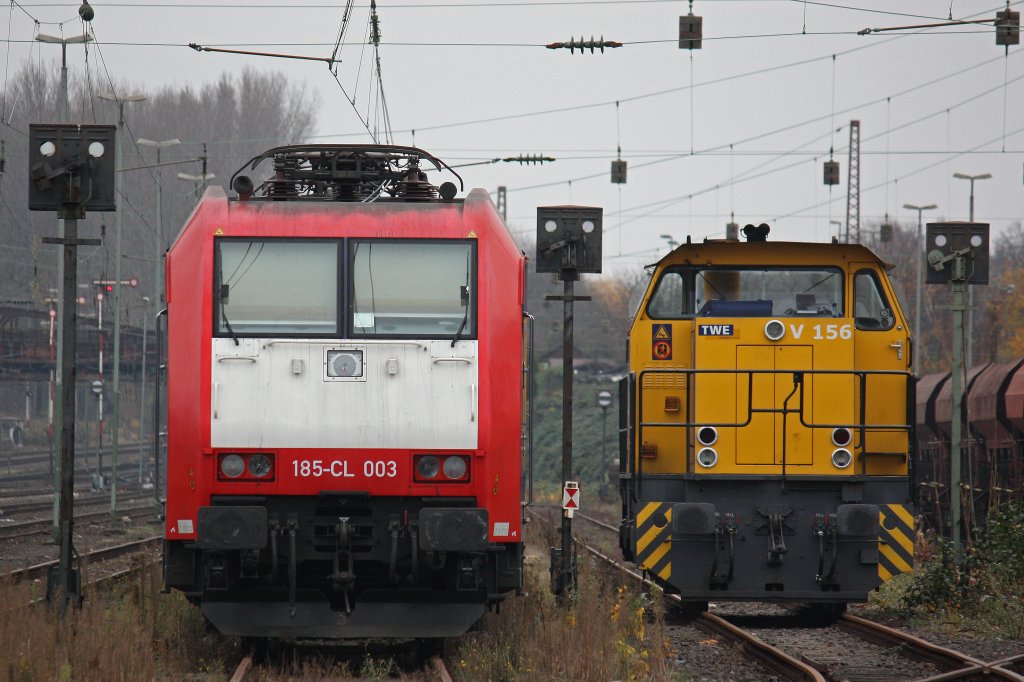 Captrain 185-CL 003 und TWE V156 standen am 24.11.12 abgestellt in Düsseldorf-Rath.